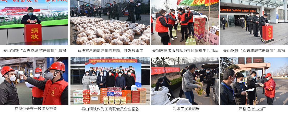 1999年3月泰山鋼鐵積極響應(yīng)全國(guó)號(hào)召向新疆貧困地區(qū)捐贈(zèng)共計(jì)5000件保暖衣物;2001年3月在市總工會(huì)發(fā)起的為患白血病女學(xué)生支斐斐捐款26600余元;同年12月又向萊蕪市社會(huì)救助工作領(lǐng)導(dǎo)小組捐助單衣3290件、棉衣3000件;2012年2月向市教育局捐助貧困生52385元;2003年1月在萊蕪抗旱救災(zāi)中捐款81930元;2004年5月在全省慈心一日活動(dòng)中捐款10萬(wàn)元;2005年1月向海嘯災(zāi)區(qū)捐款66200元,同年6月又在全市慈心一日活動(dòng)中捐款86800元;2006年11月在全市送溫暖、獻(xiàn)愛(ài)心活動(dòng)中捐款86300元;2007年4月在全市敬英雄愛(ài)心獻(xiàn)功臣、修建萊蕪戰(zhàn)役紀(jì)念館活動(dòng)中捐款18萬(wàn)元;2008年5月汶川發(fā)生強(qiáng)烈地震,泰山鋼鐵踴躍伸出之手奉獻(xiàn)愛(ài)心,支援抗震救災(zāi),累計(jì)捐款120萬(wàn)元;在2009年7月份全市慈心一日活動(dòng)中捐款164351元;2010年4月玉樹(shù)地區(qū)發(fā)生地震,泰山鋼鐵積極響應(yīng)全國(guó)號(hào)召,在第一時(shí)間向震區(qū)捐款55萬(wàn)元;在時(shí)下疫情期間捐助100萬(wàn)元物資,三次組織職工捐款……長(zhǎng)期以來(lái),泰山鋼鐵為社會(huì)慈善公益事業(yè)、各類(lèi)災(zāi)難捐款累計(jì)達(dá)1.5億元,做出了突出貢獻(xiàn),樹(shù)立了良好口碑。